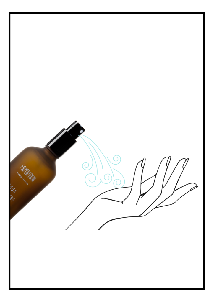 Pon varias pulsaciones de Agua Empoderada en la palma de la mano.